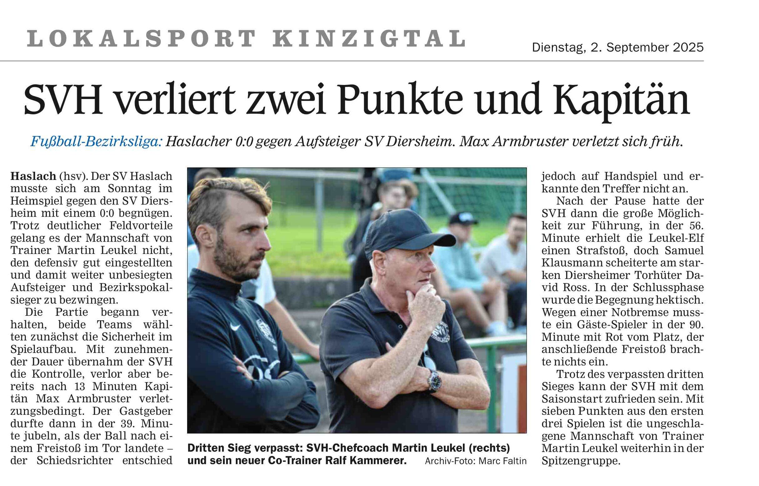 Unsere erste Mannschaft musste sich am Sonntag im Heimspiel gegen den SV Diersheim mit einem 0:0-Unentschieden zufriedengeben. Trotz deutlicher Feldvorteile gelang es der Mannschaft von Trainer Martin Leukel nicht, den defensiv eingestellten Aufsteiger zu bezwingen.