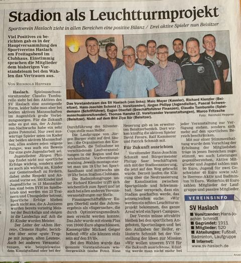 Bericht Offenburger Tageblatt vom 27.05.2019 Generalversammlung 2019