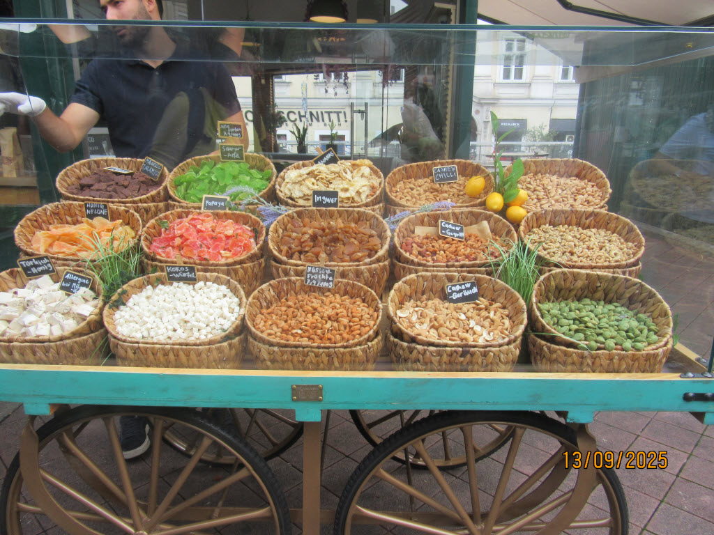 Weiter ging es dann zum Kontrastprogramm, dem Wiener Naschmarkt. Neben Obst, Gemüse, Backwaren, Fisch und Fleisch werden auch Waren aus den Ostländern und Asien angeboten. Ergänzt wird das Angebot durch eine große Auswahl an Gastronomiebetrieben. Die Wiener Kaffeehauskultur mitr ihren Kaffeespezialitäten und der Sacher-Torte lud ebenfalls zum Verweilen ein. Frisch gestärkt ging es am Nachmittag in den Prater, wo zahlreiche Fahrgeschäfte dazu beitragen hätten können, um das Gegessene wieder auszuspucken. Den Abschluss des Tages machte man im „Zum schwarzen Kamel“, einem 1901 im Wiener Jugendstil erbauten Gebäude, welches heute als Restaurant, Bar und Delikatessenhandlung genutzt wird. Hier erwartete uns ein schmackhaftes 3-Gänge-Menü.