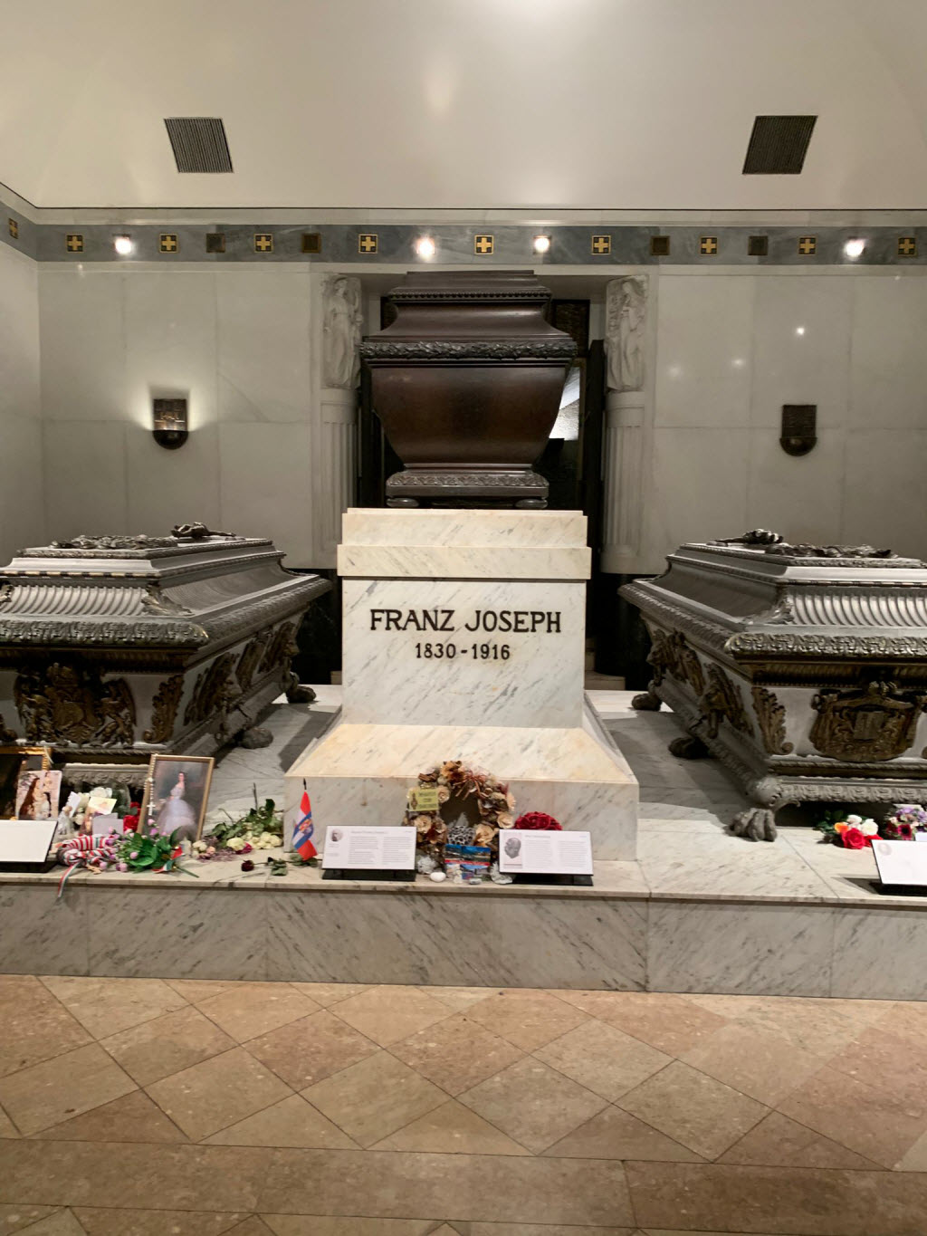Tag 2 begann man mit einer Führung auf dem Zentralfriedhof. Während Wien etwa 2 Millionen Einwohner hat, liegen hier auf 2 ½ Quadratkilometern rund 3 Millionen Gestorbene in ca. 330.000 Grabstätten. Beeindruckend dabei sind die vielen Ehrengräber, in denen u.a. Ludwig van Beethoven, Franz Schubert, Johann Strauss, Udo Jürgens, Curd Jürgens, Hans Moser oder Theo Lingen bestattet sind, während für Wolfgang Amadeus Mozart nur ein Denkmal steht, weil sich sein Leichnam auf dem Sankt Marxer Friedhof befindet. Das mit Abstand meistbesuchte Grab in der Gruppe der ehrenhalber gewidmeten Gräber ist jenes des 1998 verstorbenen Popstars Falco. Es hat sich zu einer regelrechten Pilgerstätte für Falco-Fans entwickelt.