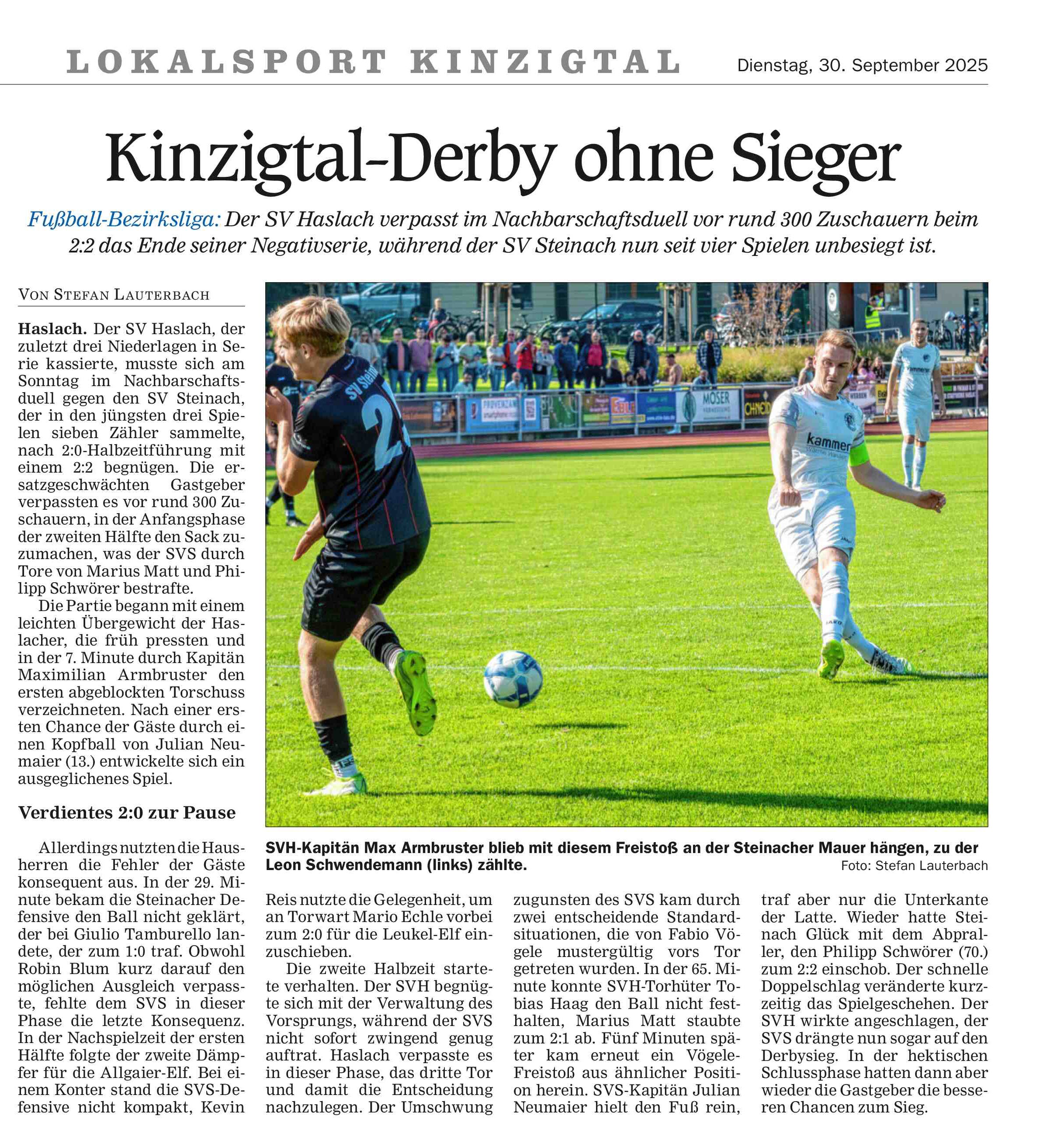 Ohne die Offensivturbos Fabio Schmid und Fabian Pacifico sowie Abwehrkante Jonas Schnaitter verkauften sich die Haslacher Truppe in Steinach mehr als teuer.