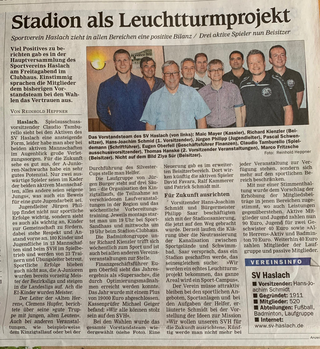 Bericht Offenburger Tageblatt vom 27.05.2019 Generalversammlung 2019