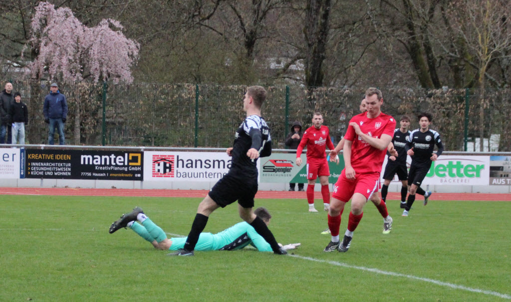 Torschütze Joel Silzer hat den Ball fest im Blick, Ettenheims Ruven Hunn hat das Nachsehen -