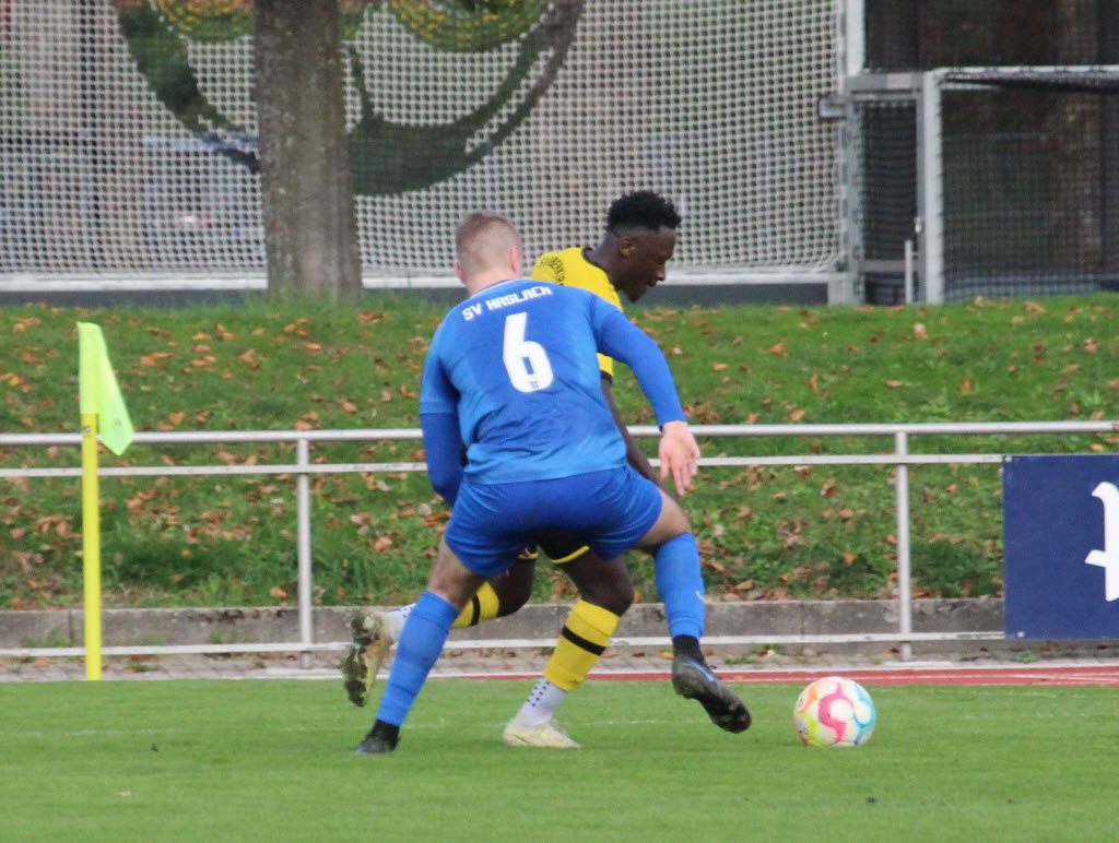 Dabei sah man zwei grundverschiedene Halbzeiten, denn Oberkirch drückte in den ersten 30 Minuten, danach war das Spiel bis zur Pause ausgeglichen. In der zweiten Halbzeit war es genau umgekehrt. Gleich zu Beginn sah sich der SVH unter Druck, begünstigte die Angriffsbemühungen der Gäste aber auch mit einigen Abspielfehlern und Unstimmigkeiten im Defensivverhalten. Trotzdem war Haslach’s Coach Leukel nicht unzufrieden, denn jeder Spieler kämpfte und engagierte sich, man bekam nur keinen Zugriff auf die Offensive der Gastgeber. Nach 15 Minuten musste Torhüter Philipp Walter erstmals retten, nachdem Brian Goncalves von der Strafraumgrenze abzog und Walter gerade noch die Fäuste nach oben reißen konnte. Nur vier Minuten später fiel die 1:0 Führung nach einer Ecke, bei der Keeper Walter nicht entschlossen herauskam, so wurde er gerempelt und der Kopfball von Srdan Lukic landete im Netz. Doch der SVH brauchte nicht lange, konnte de Partie jetzt ausgeglichener gestalten und nach einem Pass von Simon Lehmann in die Gasse für Kevin Reis konnte Torhüter Ricco Spinner dessen Schuss nur zur Seite abwehren, Joel Silzer war in Minute 26 zur Stelle und vollendete zum 1:1 Ausgleich. Fast hätte ein Fehlpass von Louis Hättich im Spielaufbau zum erneuten Rückstand geführt, als ein Oberkircher Stürmer nach einem Schuss den Abpraller mit der Hacke ins Tor schoss, doch Schiedsrichter Valentin Hodler entscheid auf Abseits. Glück hatten die Kinzigtäler auch, als Philipp Walter einen Schuss von Luca Braun mit den Fingerspitzen noch um den Pfosten lenken konnte. Kurz vor der Pause hatte der SVO nochmals eine Großchance, als sich Olibrius Befio an der Strafraumgrenze drehte und den Ball für Brian Goncalves auflegte, doch der lupfte den Ball über das Tor.
