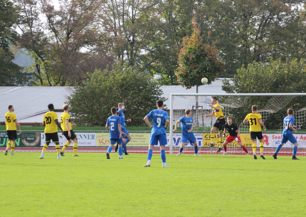 Überragend war der Beginn der zweiten Halbzeit für die Kinzigtäler, denn Simon Lehmann hebelte in der 50. Minute nach einem Ballgewinn die komplette Abwehr der Gastgeber mit einem Zuspiel auf Mario Braig aus. Diese Chance ließ sich Braig allein vor Torhüter Spinner nicht entgehen und vollendete abgeklärt zur 1:2 Führung des SVH. Die Leukel-Truppe hatte jetzt deutlich Oberwasser und erspielte sich gute Chancen, so auch als Simon Lehmann nach einem schnell ausgeführten Freistoß Joel Silzer bediente, doch dessen Querpass sprang Kevin Reis an die Hand. Auch in der Defensive agierte man nun ruhiger und konsequenter, so auch als der eingewechselte Jonathan Benz nach einem weiten Flugball auf der Torauslinie gegen Goncalves eindrucksvoll klärte. In der Folge vergaß der SVH den Deckel drauf zu machen, gute Angriffe wurden nicht konsequent abgeschlossen. Fast hätte sich dies gerecht, als Mika Braun in der 70. Minute mit einem Doppelpass in den Strafraum eingedrungen war, dann aber am Tor vorbeischoss. Der tiefe Boden hatte Kraft gekostet, Oberkirch konnte nun das Spiel wieder ausgeglichen gestalten und sowohl Simon Lehmann als auch Luka Schmieder, der Turm in der Schlacht, klärten souverän in letzter Sekunde. Als in Minute 85 Goncalves nach einem dummen Foul gelb-rot sah, schienen die Kinzigtäler in Überzahl dem Sieg sehr nahe. Doch in der 90. Minute köpfte Viktor Klein nach einer Ecke von Mika Braun zum 2:2 Endstand ein. Daran änderte auch ein gutes Zuspiel von Max Armbruster auf Joel Silzer nichts mehr.