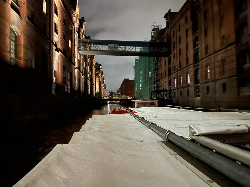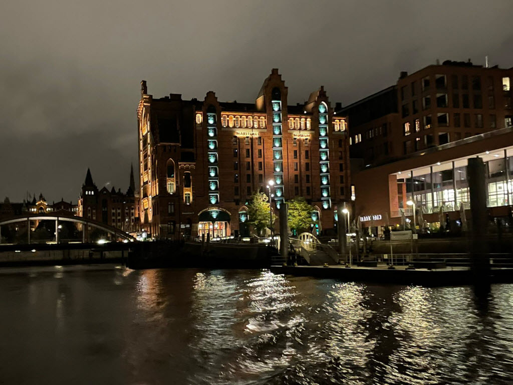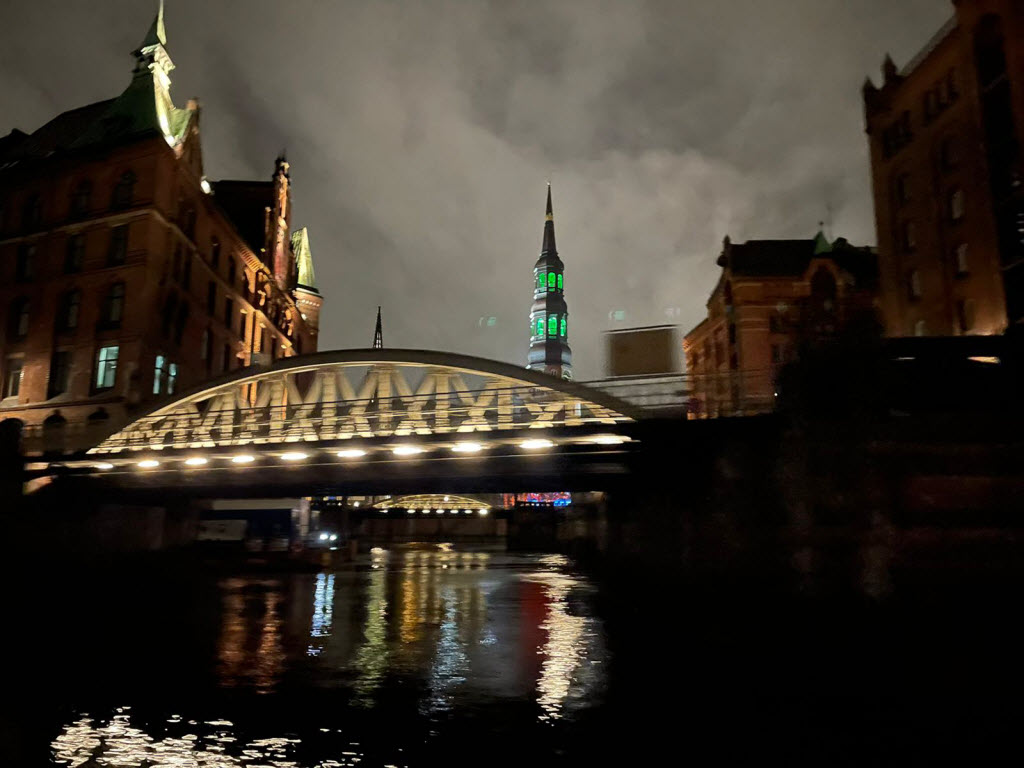 Eine Hafenrundfahrt bei Nacht ermöglichte uns schöne Einblicke in die Kanäle der Speicherstadt.