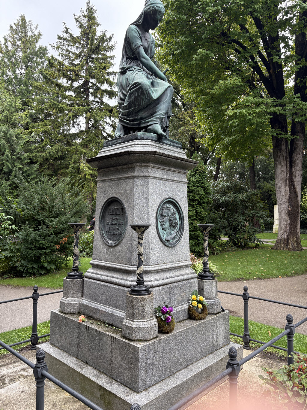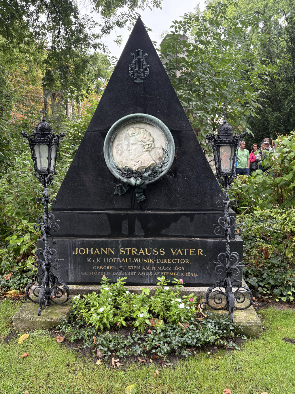 Tag 2 begann man mit einer Führung auf dem Zentralfriedhof. Während Wien etwa 2 Millionen Einwohner hat, liegen hier auf 2 ½ Quadratkilometern rund 3 Millionen Gestorbene in ca. 330.000 Grabstätten. Beeindruckend dabei sind die vielen Ehrengräber, in denen u.a. Ludwig van Beethoven, Franz Schubert, Johann Strauss, Udo Jürgens, Curd Jürgens, Hans Moser oder Theo Lingen bestattet sind, während für Wolfgang Amadeus Mozart nur ein Denkmal steht, weil sich sein Leichnam auf dem Sankt Marxer Friedhof befindet. Das mit Abstand meistbesuchte Grab in der Gruppe der ehrenhalber gewidmeten Gräber ist jenes des 1998 verstorbenen Popstars Falco. Es hat sich zu einer regelrechten Pilgerstätte für Falco-Fans entwickelt.
