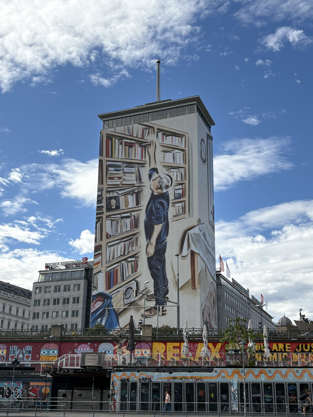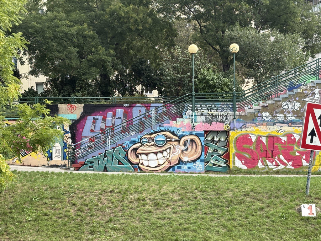 Der letzte Tag begann nach dem Frühstück mit einer Bootstour auf dem Donaukanal. Von der Stadt Wien sieht man dabei nicht viel, aber man schippert gemütlich über den Kanal und man sieht so viel Streetart, wie sonst nirgendwo in Wien. Selbst Müllverbrennungsanlagen werden zu Kunstobjekten, kein Wunder, wenn Friedens-reich Hundertwasser am Werk war.
