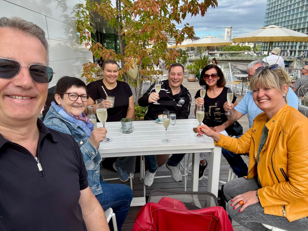 Nach der Stadtführung war Freizeit angesagt. Einige gingen ins Stadion, um sich das Spiel Rapid Wien gegen WSG Tirol, also Wienerle gegen Tiroler, anzuschauen. Die anderen erkundeten die Stadt auf eigenen Pfaden oder tourten mit dem Bus durch Wien, wobei die meisten einen Abstecher in die kaiserliche Sommerresidenz Schloss Schönbrunn machten, wo auch Kaiser Franz Joseph und Kaiserin Sisi wohnten, und bestaunten die prächtigen Parkanlagen. Abends ging es dann in die Restaurant-Brauerei Salm Bräu, wo zu Wiener Hausmannkost hausgebraute Bierspezialitäten angeboten werden.