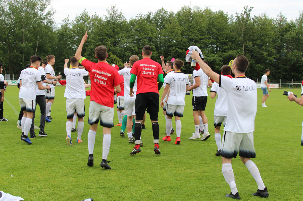 Mit dieser beruhigenden Führung ging es auch in die zweite Hälfte. Haslach hatte in den Verwaltungsmodus umgestellt, Stadelhofen hatte nicht mehr entgegenzusetzen. Wenn es dann mal gefährlich wurde, dann hatte die SG Haslach nicht konsequent geklärt. Auf der Gegenseite versäumte man es, die Vorentscheidung durch einen konsequenteren Abschluss herbeizuführen. Pech war allerdings, dass ein Schuss von Simon Lehmann von der rechten Seite an den linken Innenpfosten sprang und von dort wieder ins Feld zurück. Die SG Haslach wechselte nun durch, nahm Tempo aus der kräftezehrenden Begegnung und fuhr den Sieg sicher nach Hause. Mit diesem Pokalsieg ist die SG nicht nur Bezirkspokalsieger, sondern auch Bezirksligameister und Landesligaaufsteiger und schaffte somit das angestrebte Double.
